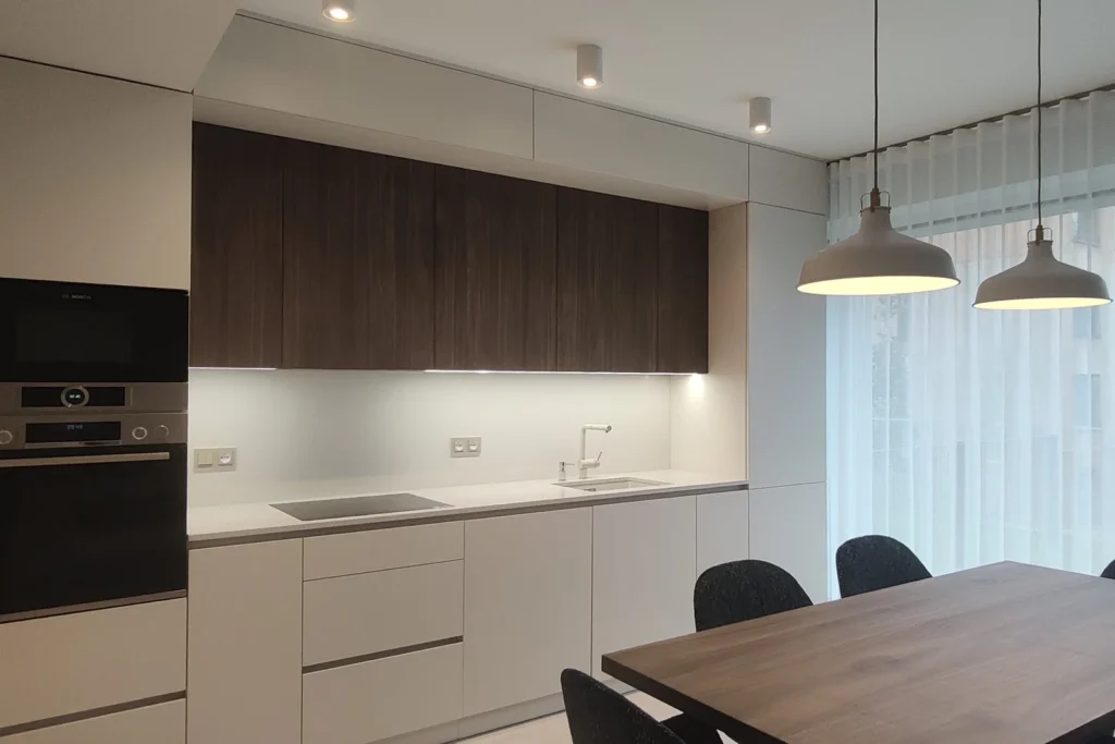 - Ergonomie a průchody: Ujistěte se, že pracovní trojúhelník (sporák – dřez – lednice) funguje a průchody nejsou blokované a že máte dost místa na pracovní ploše.