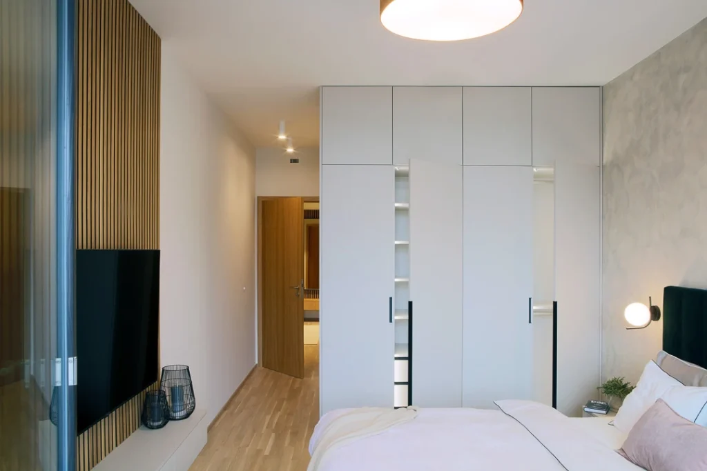 Řešení: myslete na úložné prostory od začátku – vestavěné skříně, multifunkční nábytek (např. postel s úložným prostorem) a chytré detaily (police, boxy, organizéry). Praktické řešení nemusí ubírat stylu – naopak, působí čistě a uklizeně.